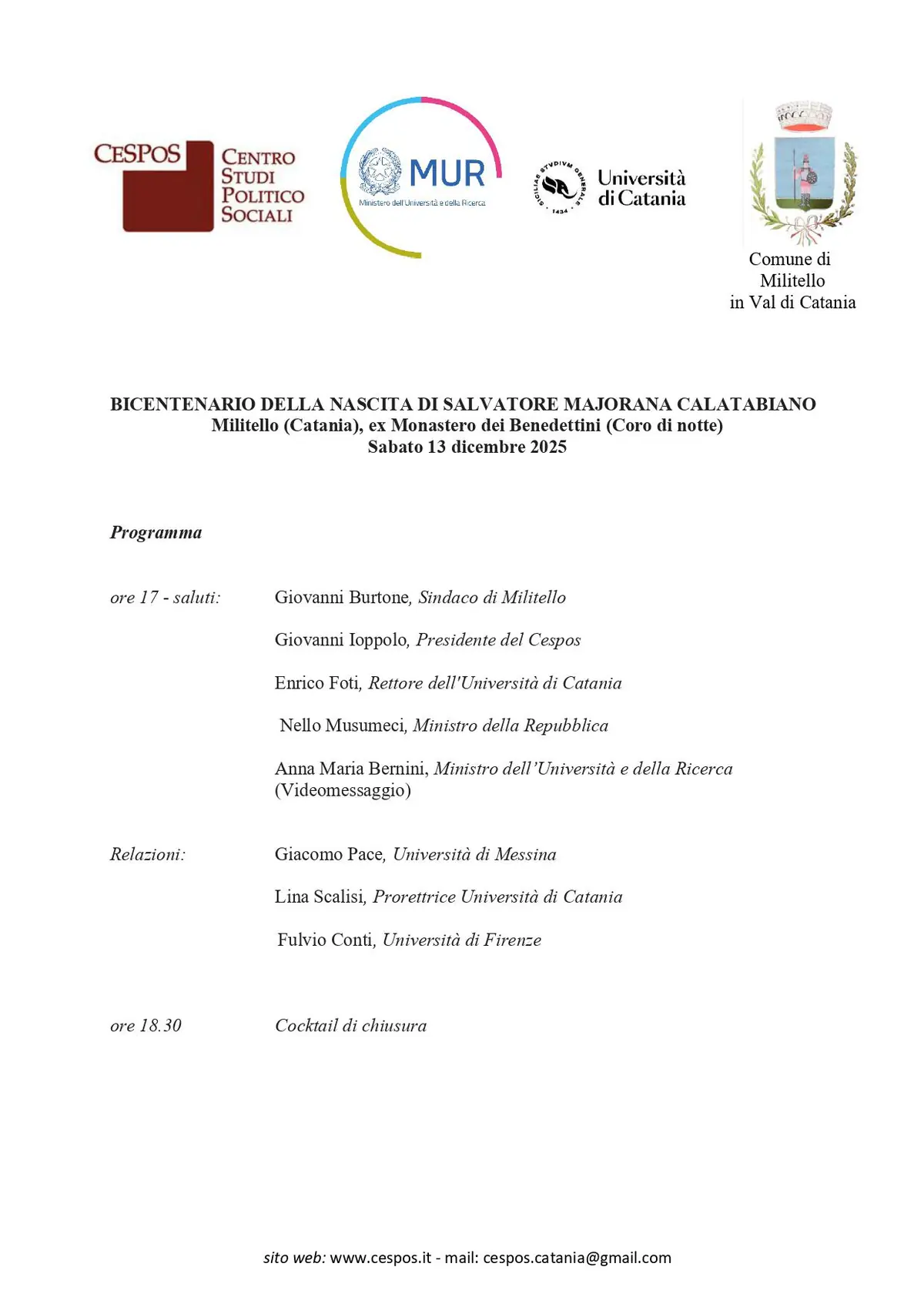 BICENTENARIO DELLA NASCITA DI SALVATORE MAJORANA CALATABIANO